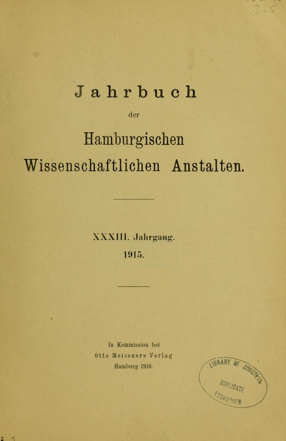 Jahrbuch der Hamburgischen Wissenschaftlichen Anstalten.Jahrg.33 (1915)