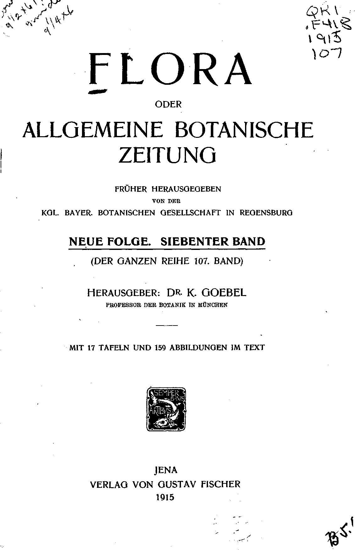 Flora oder Botanische Zeitung :welche Recensionen, Abhandlungen, Aufsätze, Neuigkeiten und Nachrichten, die Botanik betreffend, enthält /v.107 (1915)