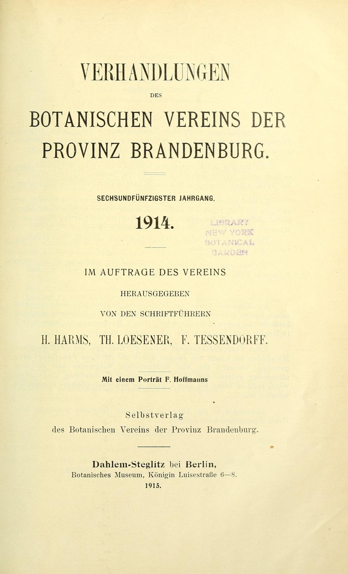 Verhandlungen des Botanischen Vereins für die Provinz Brandenburg.Jahrg.56-58 1914-1916