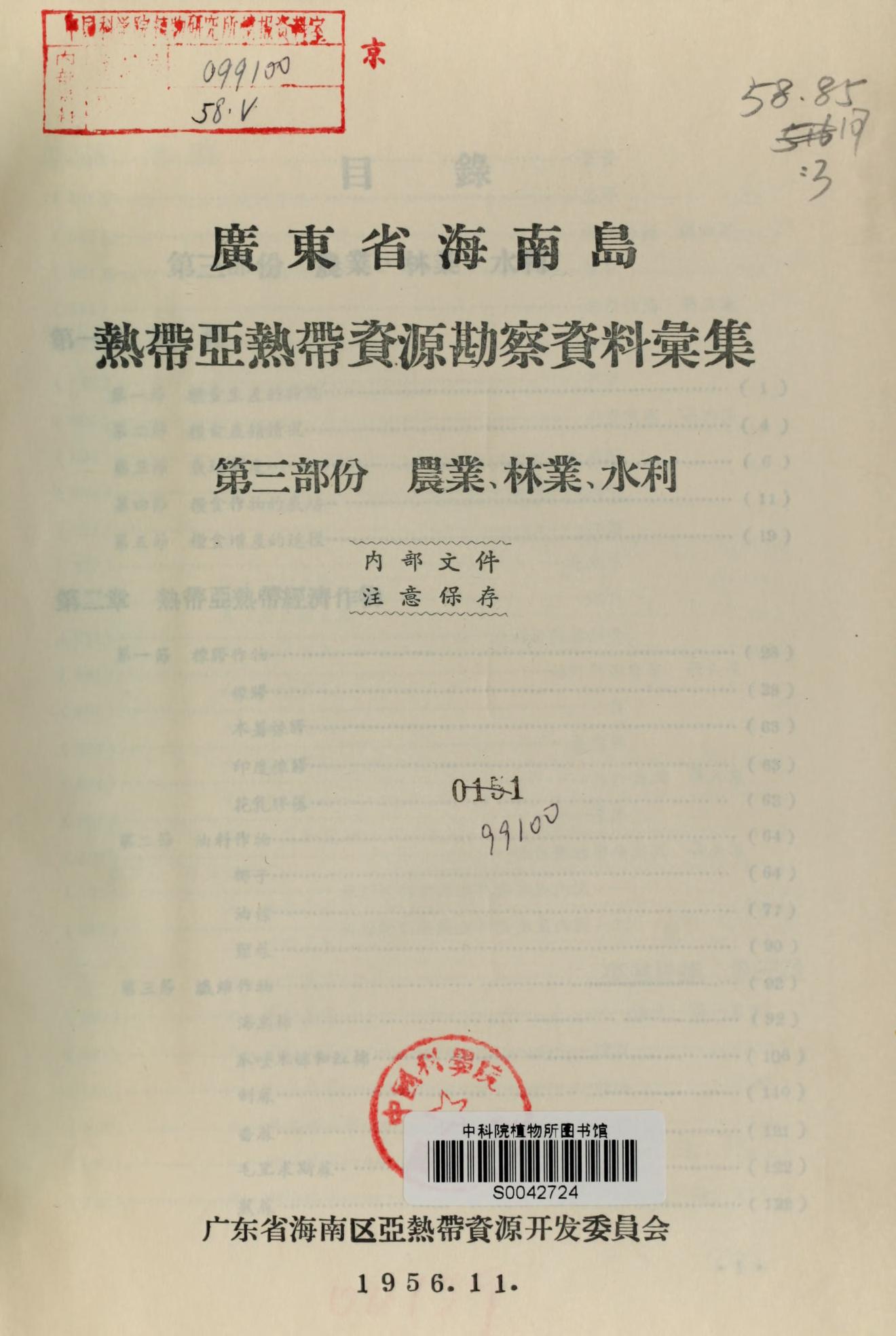 广东省海南岛热带亚热带资源勘查资料汇集第三部分农业、林业、水利