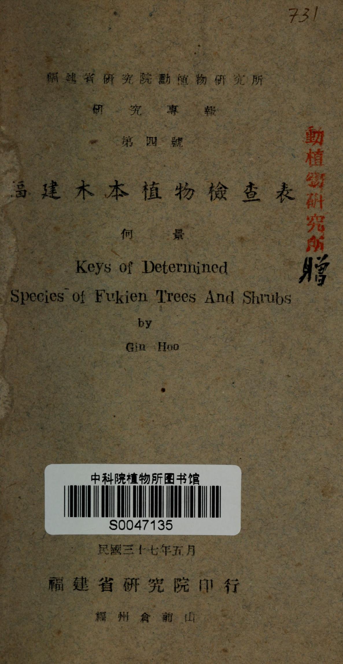 福建木本植物检索表第四号
