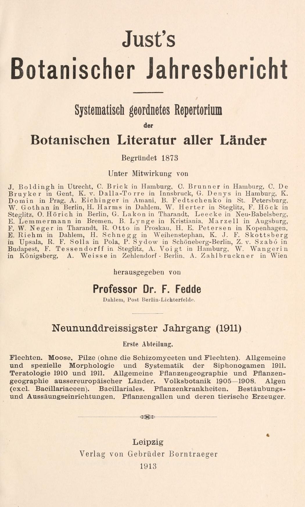 Just's botanischer jahresbericht. Systematisch geordnetes repertorium der botanischen literatur aller länder.Jahrg. 39, Abt. 1 (1911)