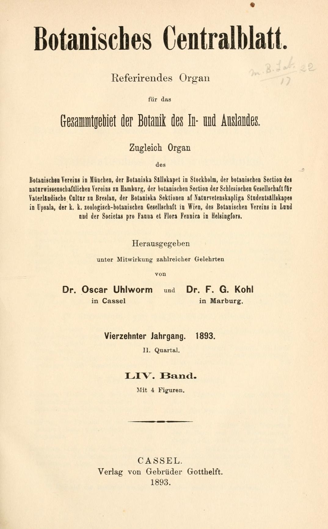Botanisches Zentralblatt; referierendes Organ für das Gesamtgebiet der Botanik.jahrg. 14, bd. 54 (1893)