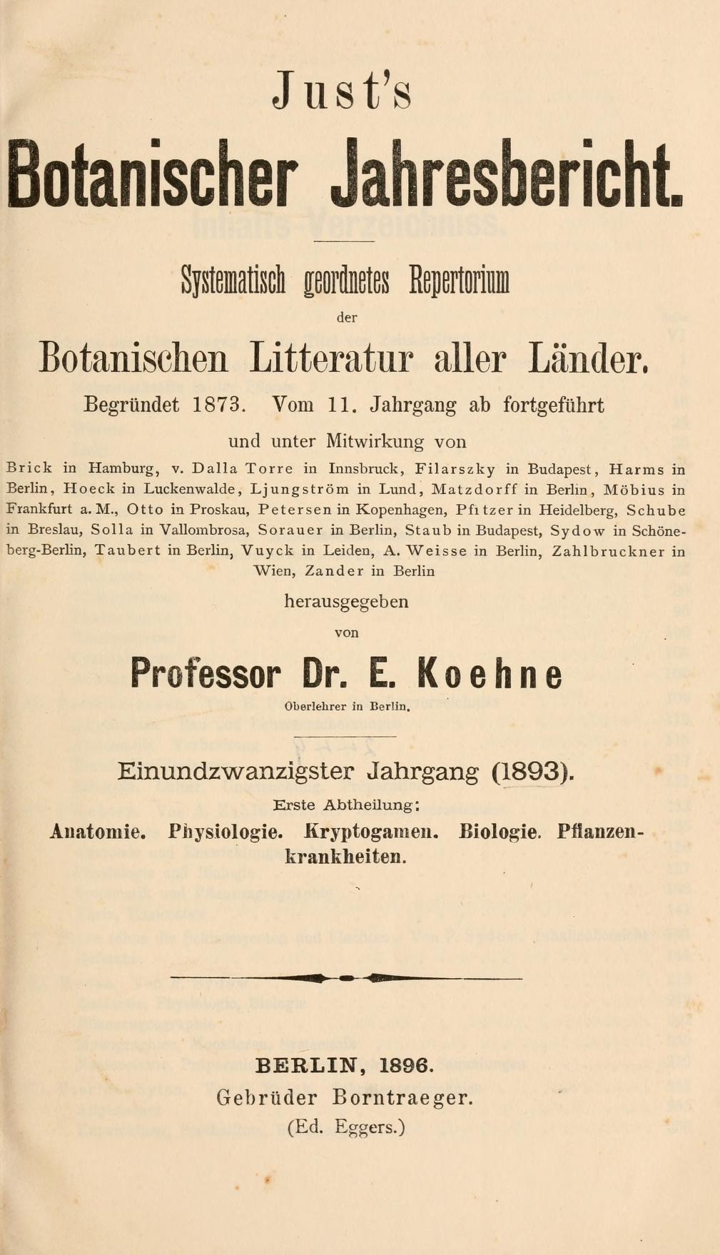 Just's botanischer jahresbericht. Systematisch geordnetes repertorium der botanischen literatur aller länder.Jahrg. 21, Abt. 1 (1893)