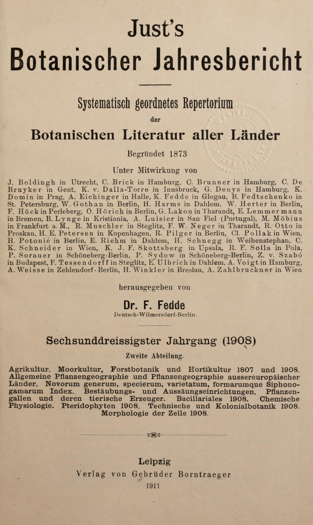Just's botanischer jahresbericht. Systematisch geordnetes repertorium der botanischen literatur aller länder.Jahrg. 36, Abt. 2 (1908)