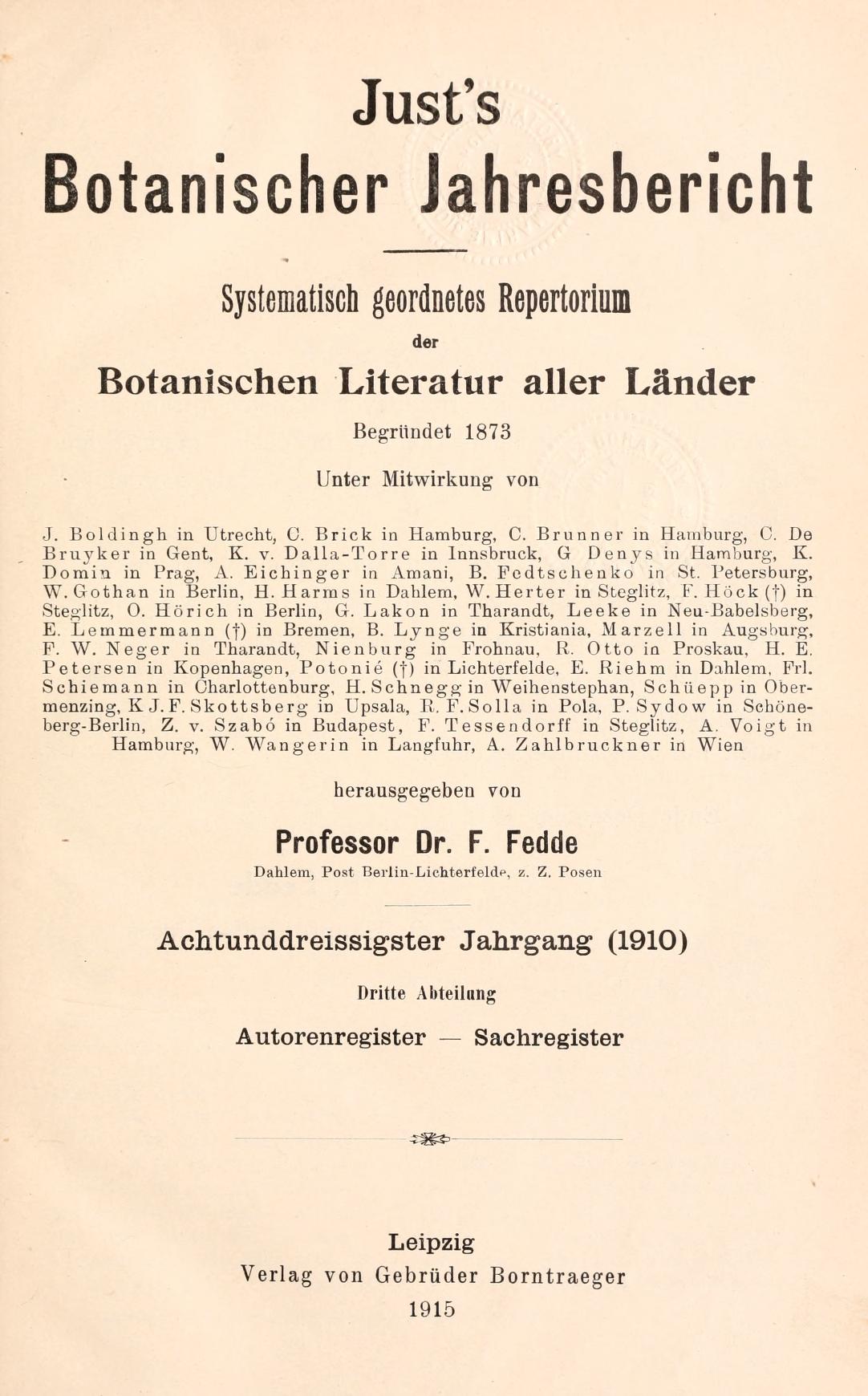 Just's botanischer jahresbericht. Systematisch geordnetes repertorium der botanischen literatur aller länder.Jahrg. 38, Abt. 3 (1910)