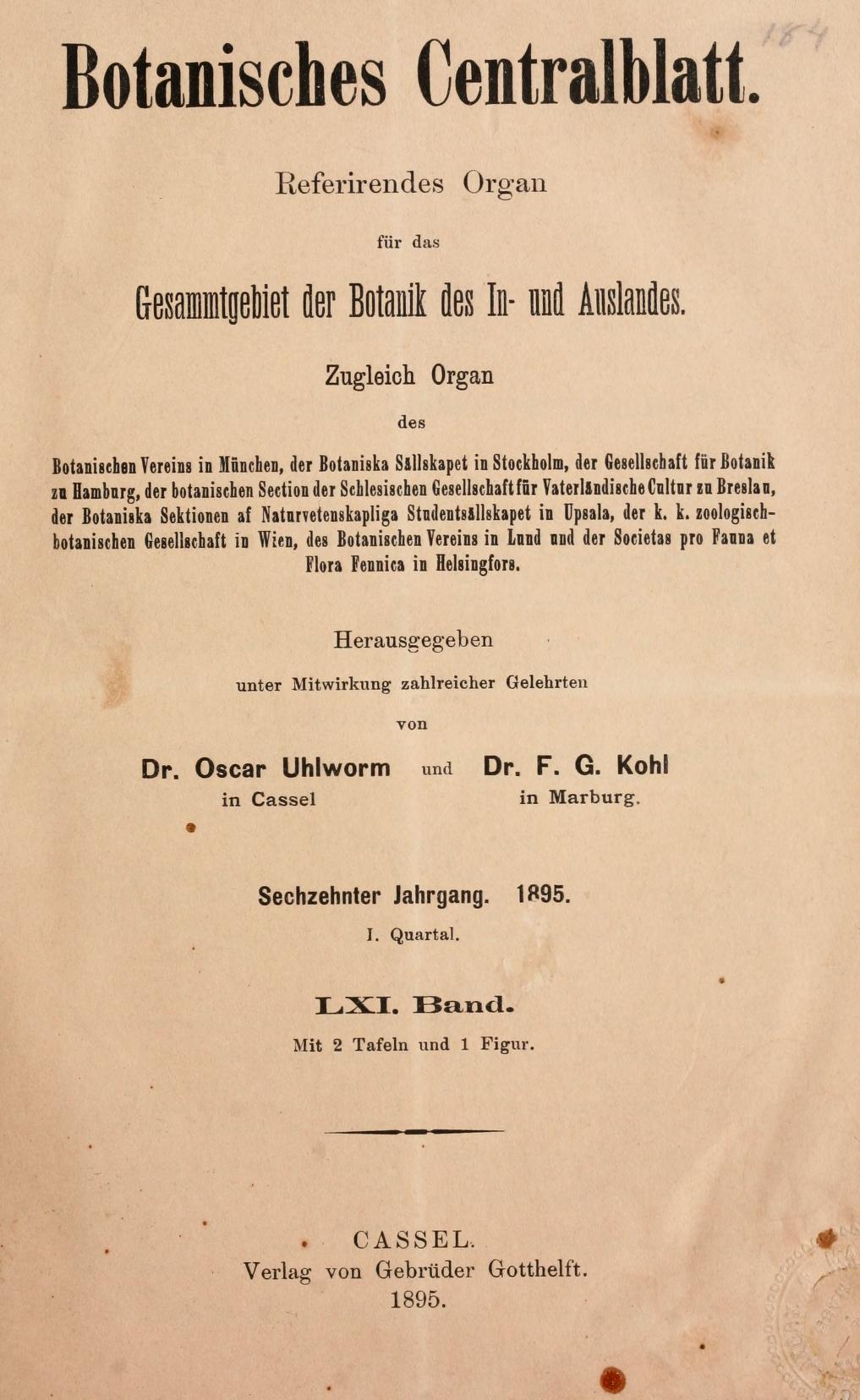 Botanisches Zentralblatt; referierendes Organ für das Gesamtgebiet der Botanik.jahrg. 16, bd. 61 (1895)
