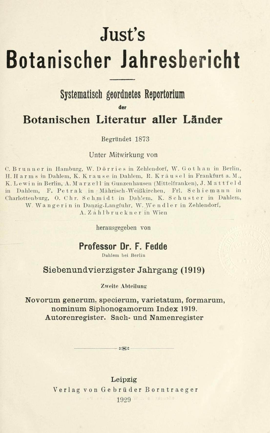 Just's botanischer jahresbericht. Systematisch geordnetes repertorium der botanischen literatur aller länder.Jahrg. 47, Abt. 2 (1919)