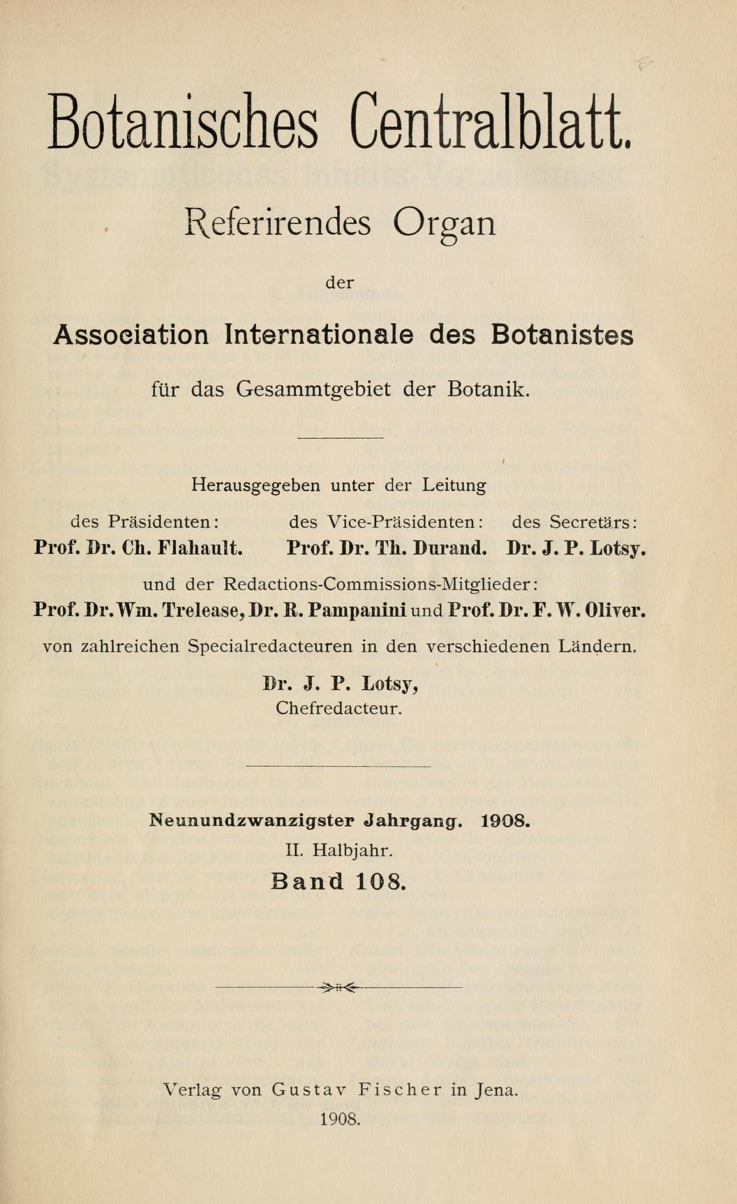 Botanisches Zentralblatt; referierendes Organ für das Gesamtgebiet der Botanik.jahrg. 29, bd. 108 (1908)