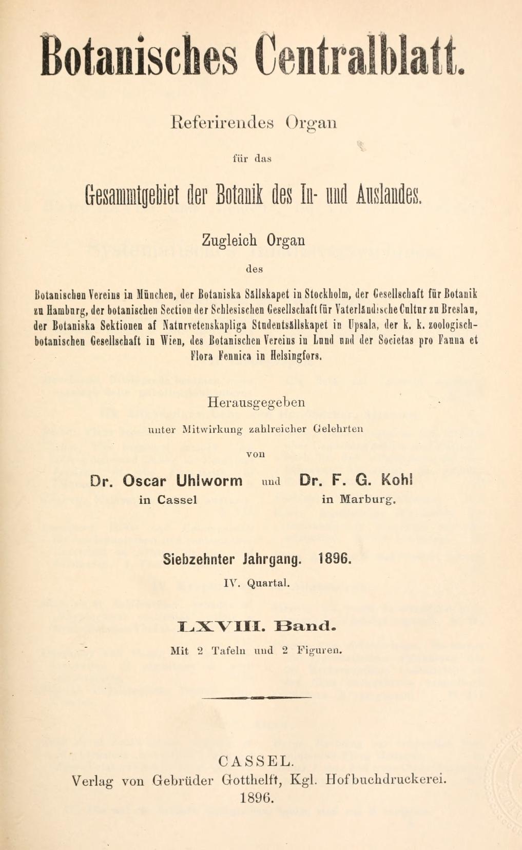 Botanisches Zentralblatt; referierendes Organ für das Gesamtgebiet der Botanik.jahrg. 17, bd. 68 (1896)