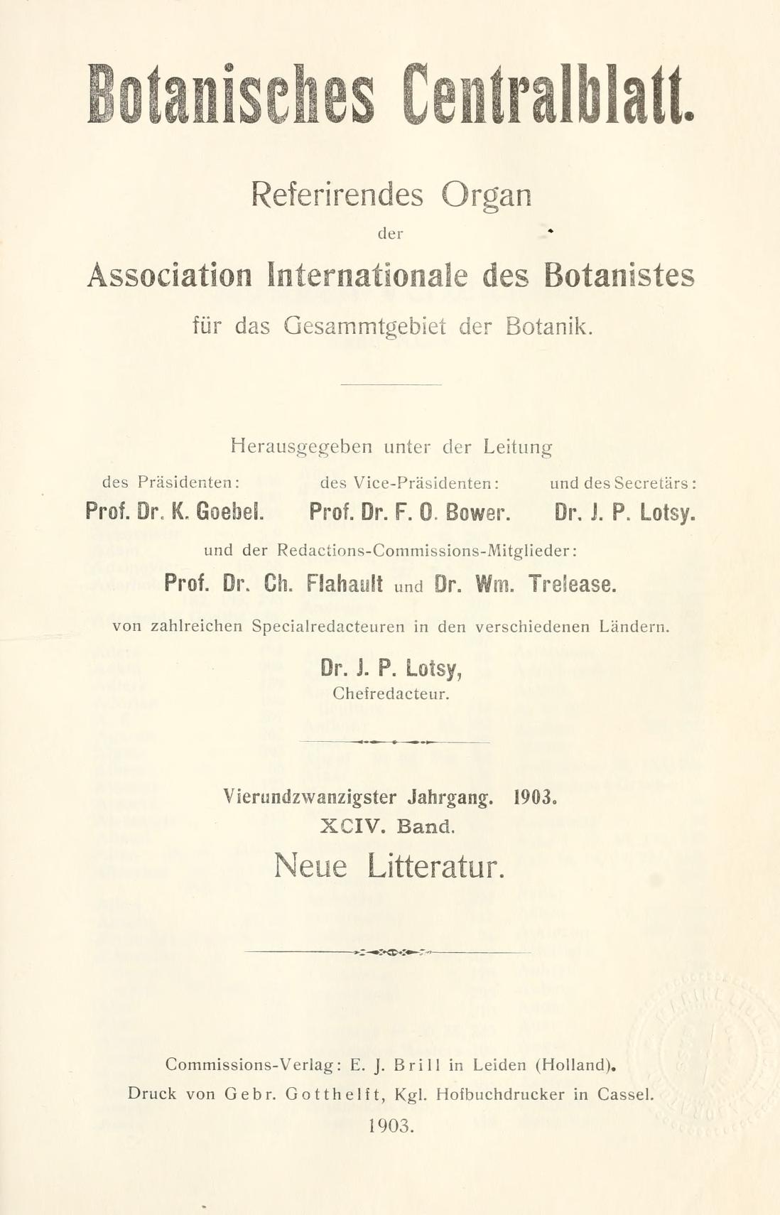 Botanisches Zentralblatt; referierendes Organ für das Gesamtgebiet der Botanik.jahrg. 24, bd. 94 (1903)