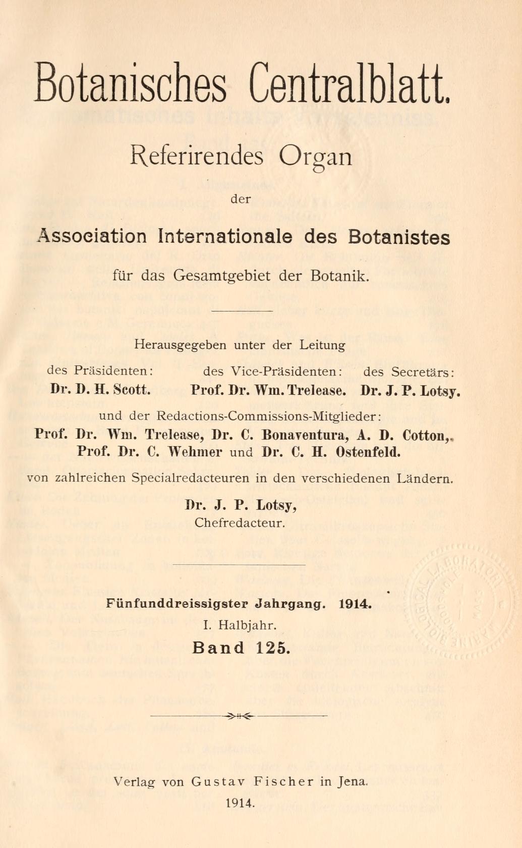 Botanisches Zentralblatt; referierendes Organ für das Gesamtgebiet der Botanik.jahrg. 35, bd. 125 (1914)