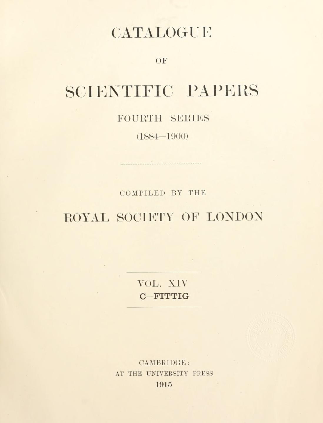 Catalogue of scientific papers, 1800-1863 [to 1884-1900].v. 14