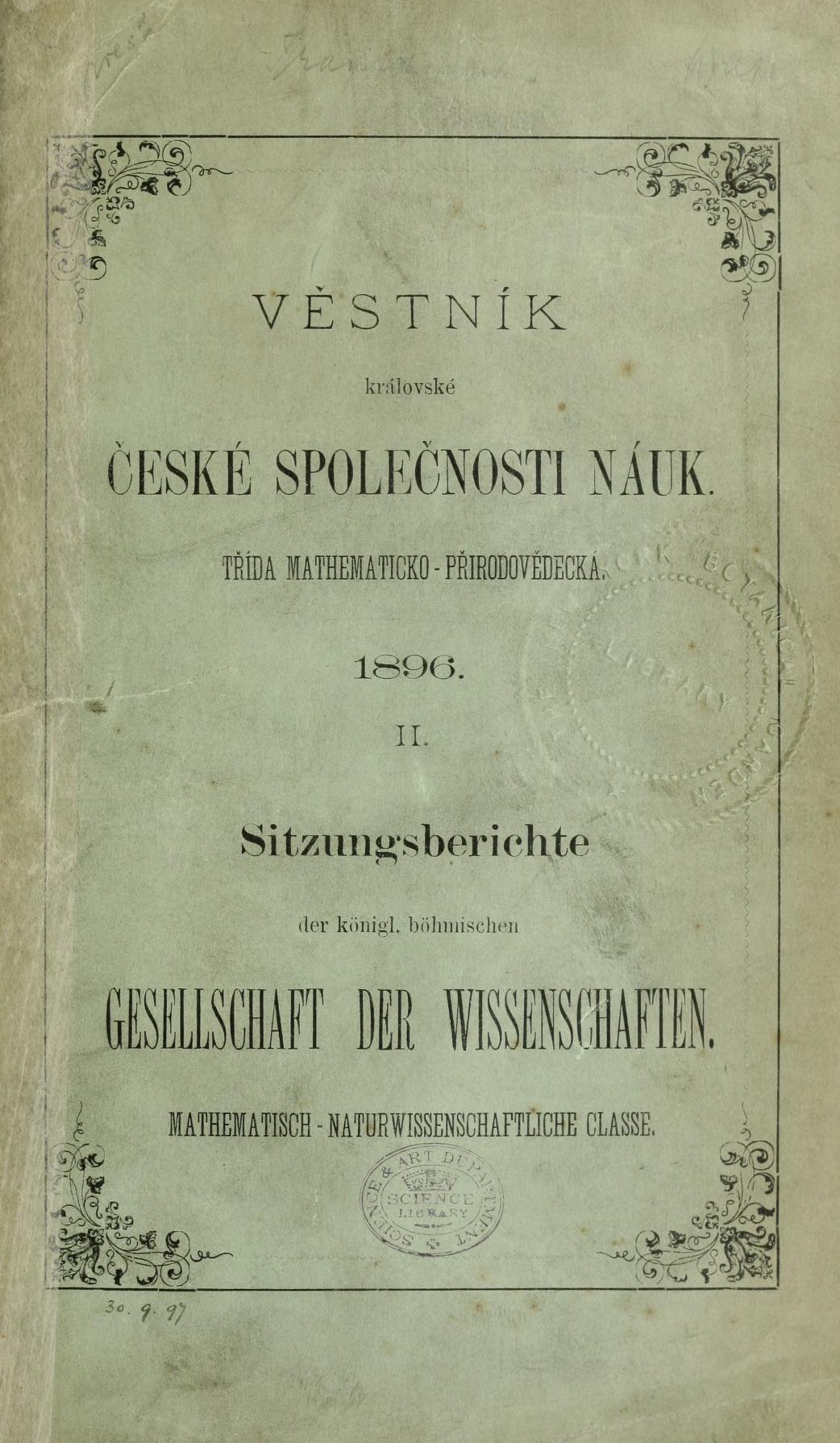 Věstník Královské české společnosti náuk. Třída mathematicko-přírodovědecká = Sitzungsberichte der Königl. Böhmischen Gesellschaft der Wissenschaften. Mathematisch-naturwissenschaftliche Classe.1896, pt. 2