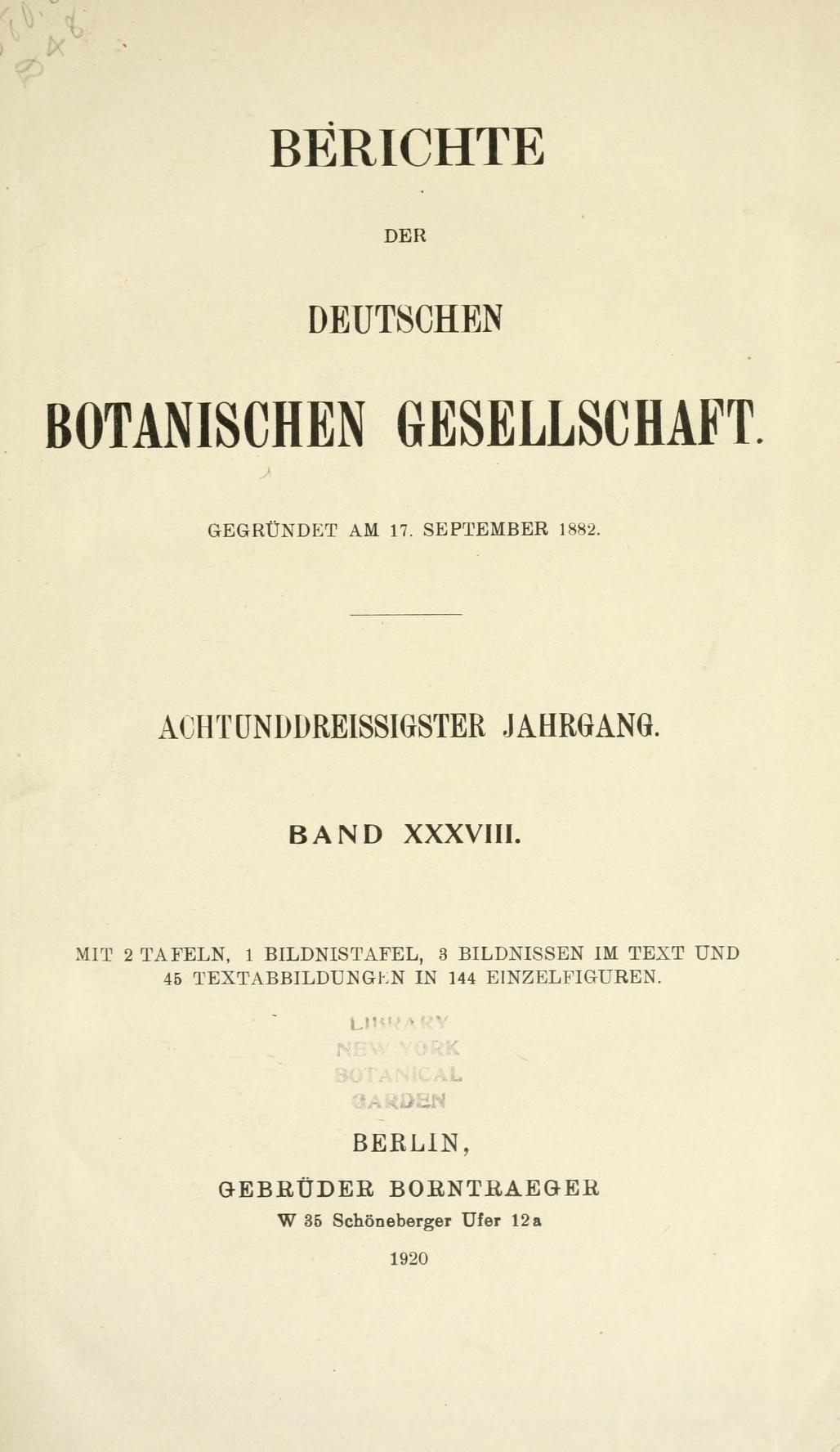 Berichte der Deutschen Botanischen Gesellschaft.v. 38 (1920)