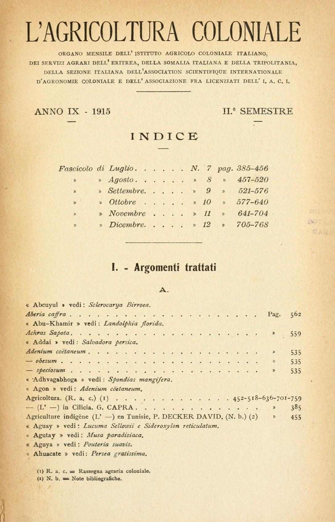 L'Agricoltura coloniale.anno. 9 sem. 2