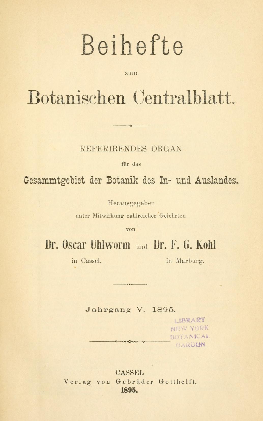Beihefte zum botanischen Centralblatt.Bd. 5-6