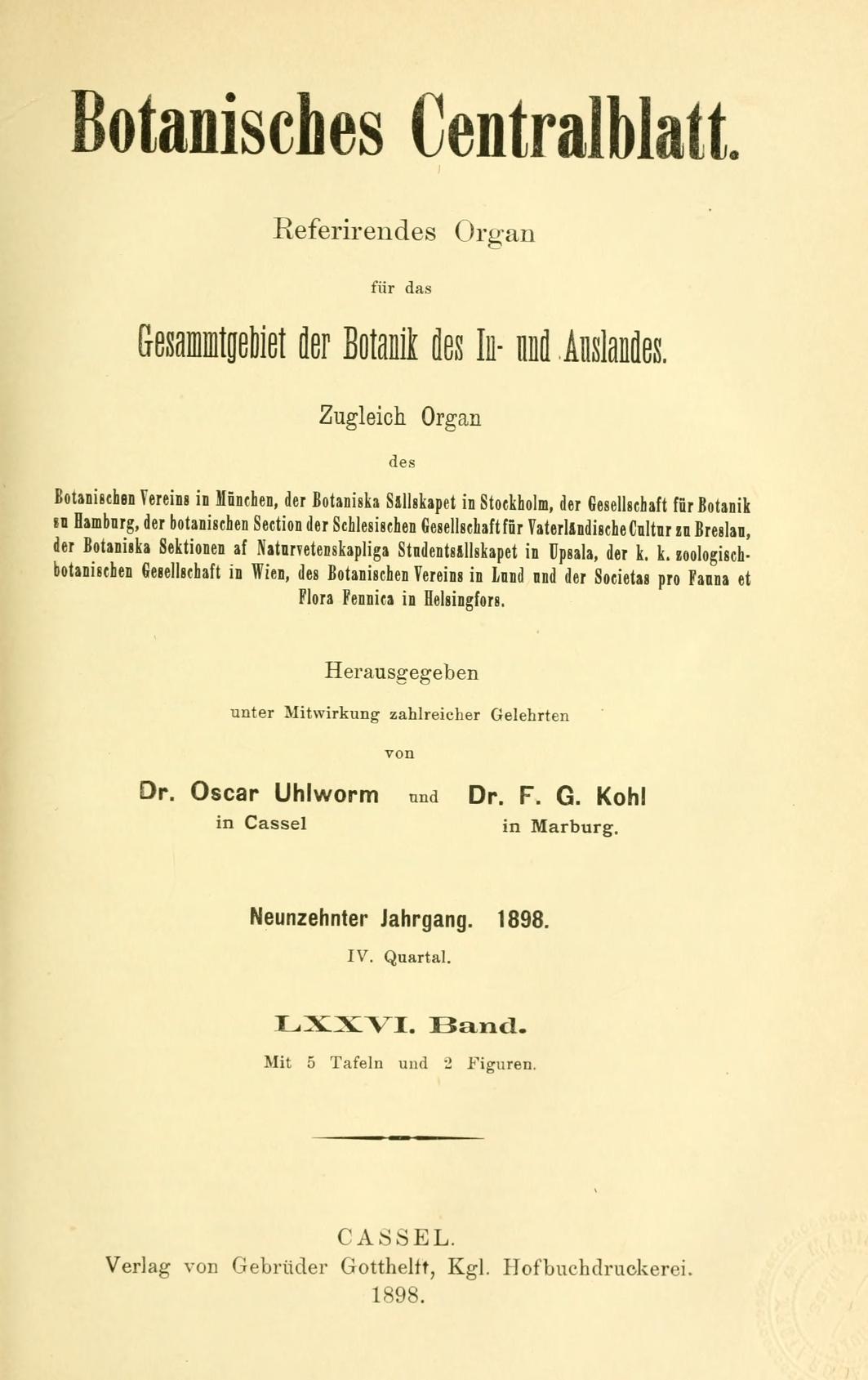 Botanisches Zentralblatt; referierendes Organ für das Gesamtgebiet der Botanik.jahrg. 19, bd. 76 (1898)