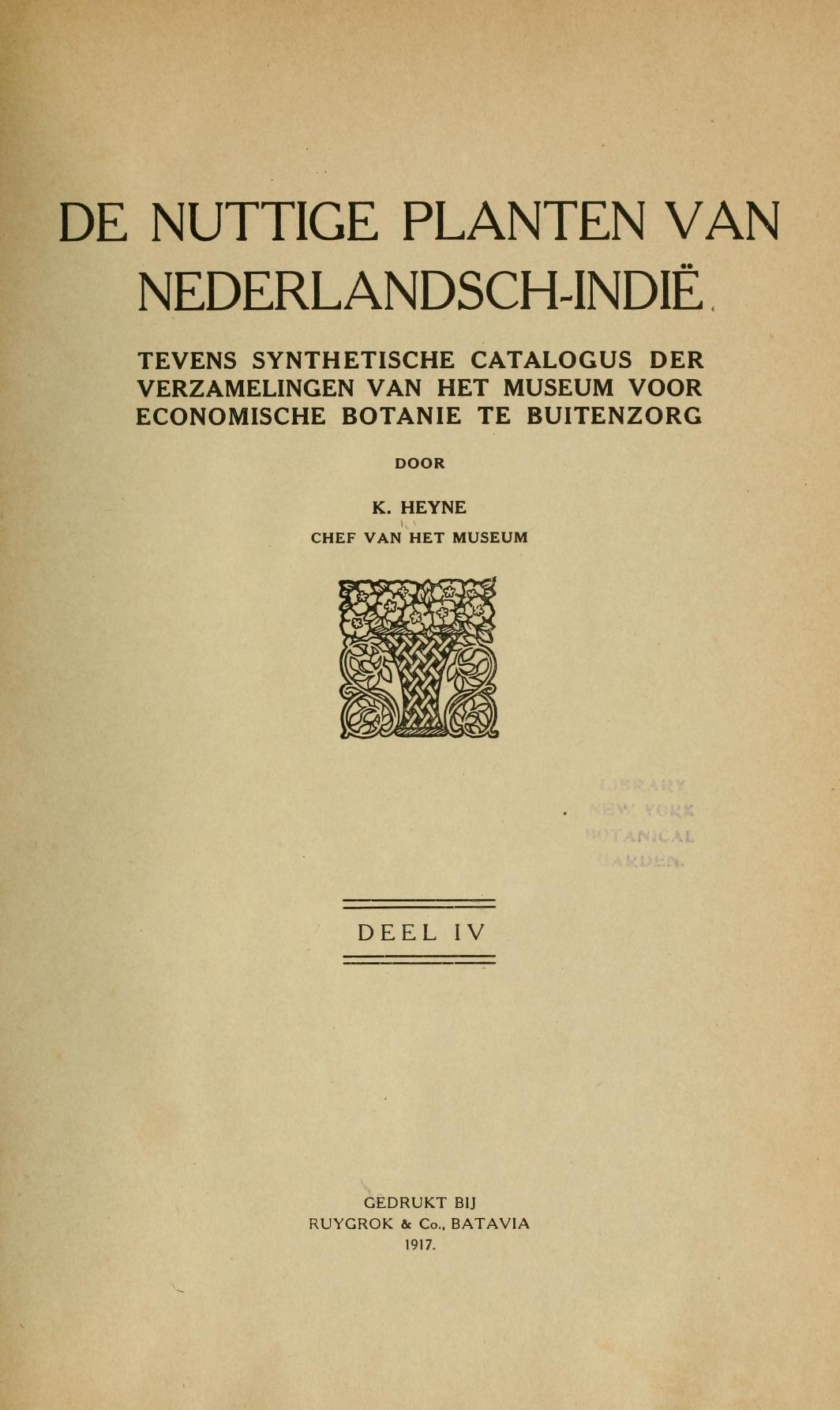 Heyne, K.; Museum voor Economische Botanie (Bogor, Indonesia)