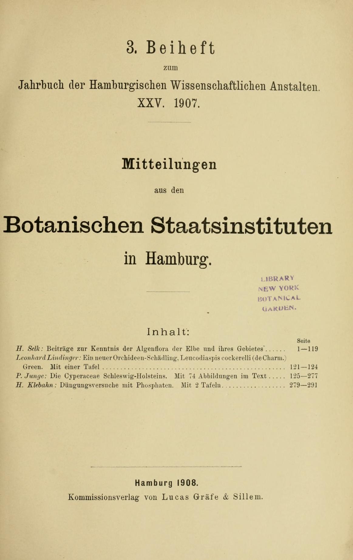 Mitteilungen aus den Botanischen Staatsinstituten in Hamburg. 1907-1909
