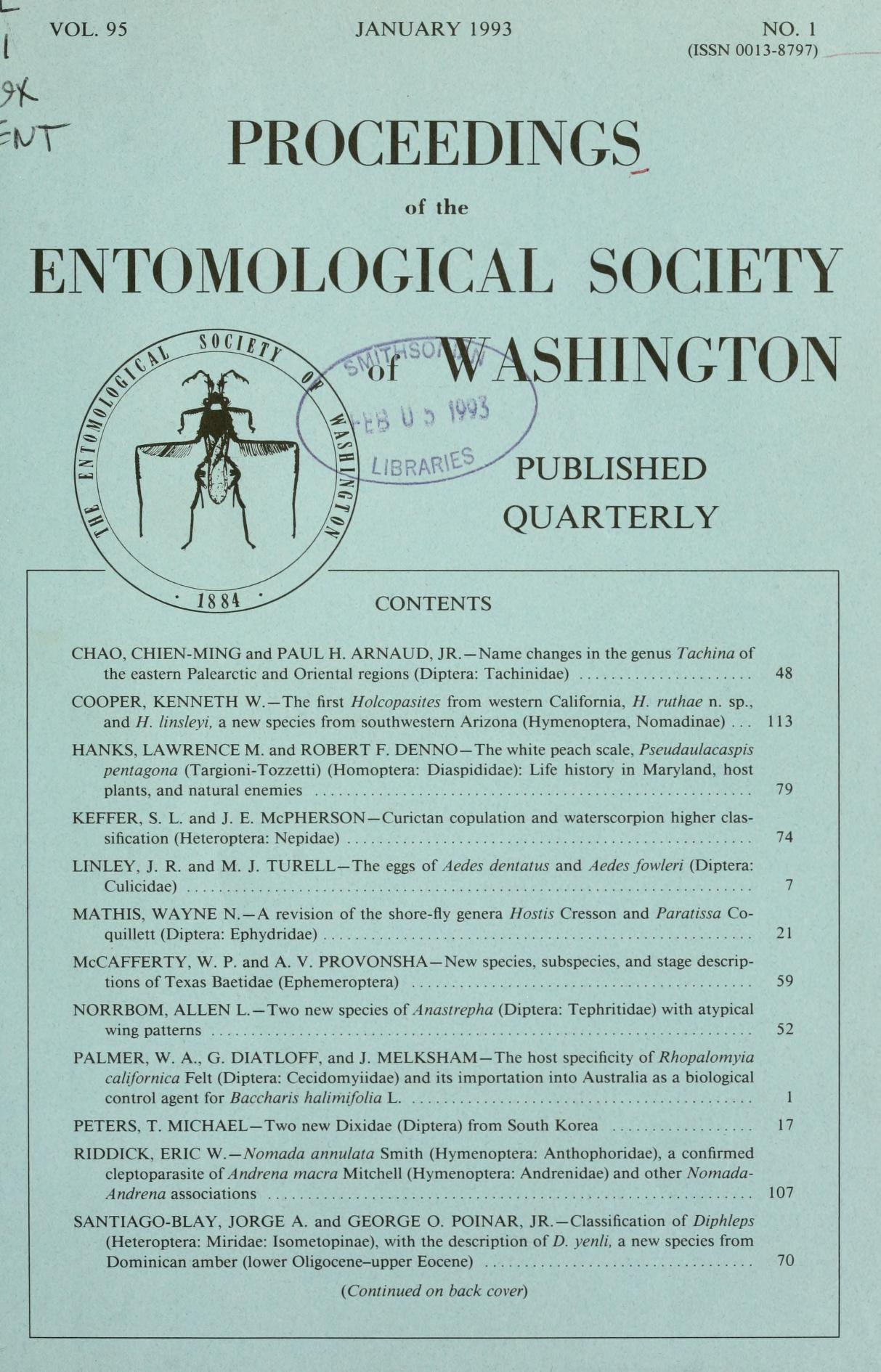 Proceedings of the Entomological Society of Washington.v.95 (1993)