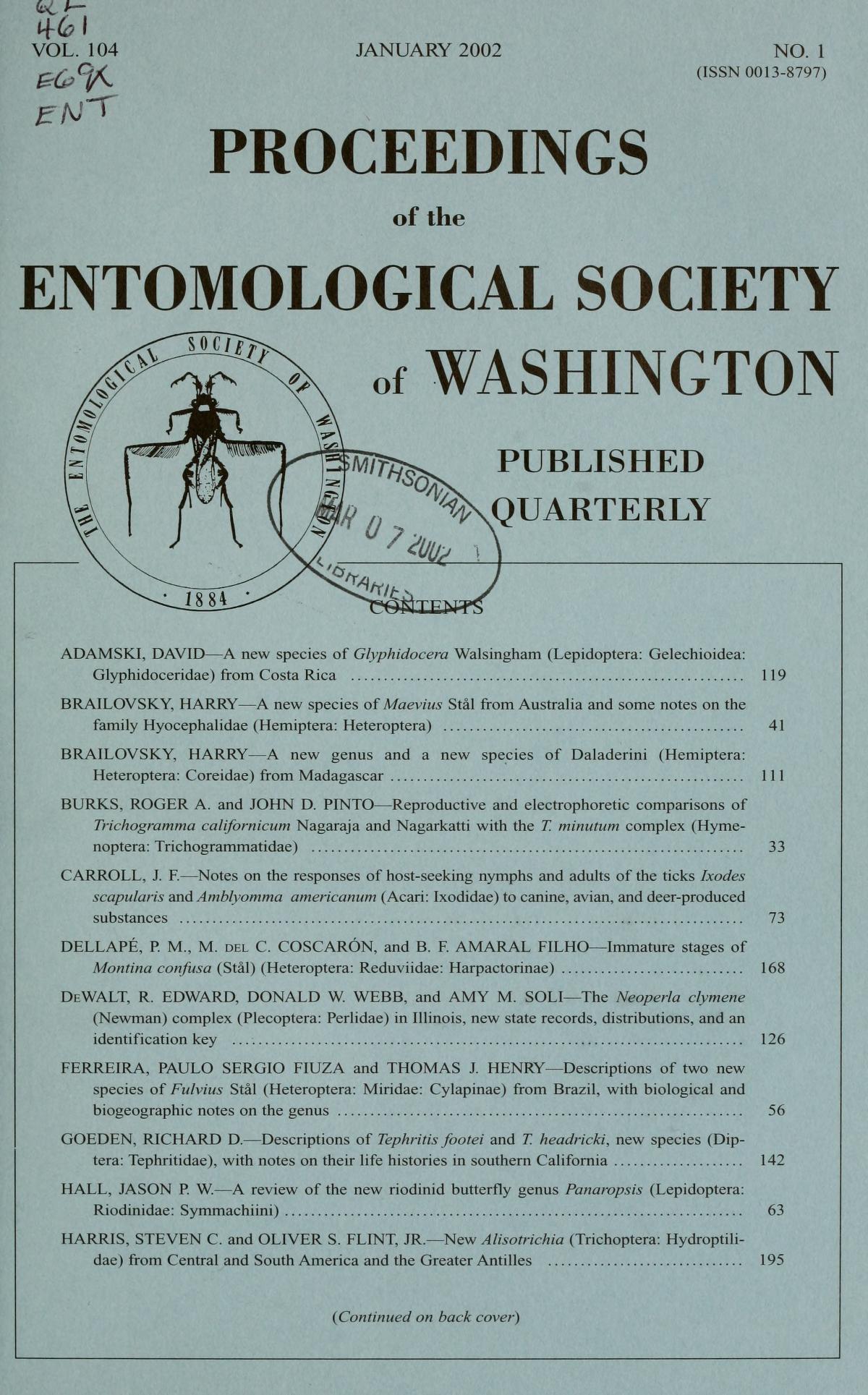 Proceedings of the Entomological Society of Washington.v.104:no.1-2 (2002)