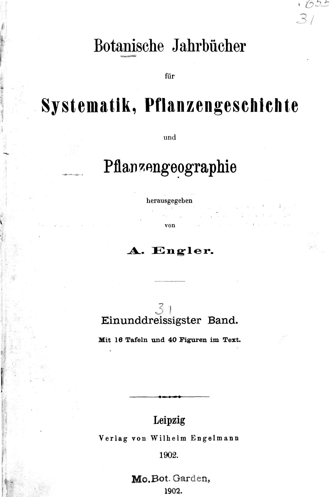 Botanische Jahrbücher fur Systematik, Pflanzengeschichte und Pflanzengeographie.v.31 (1902)
