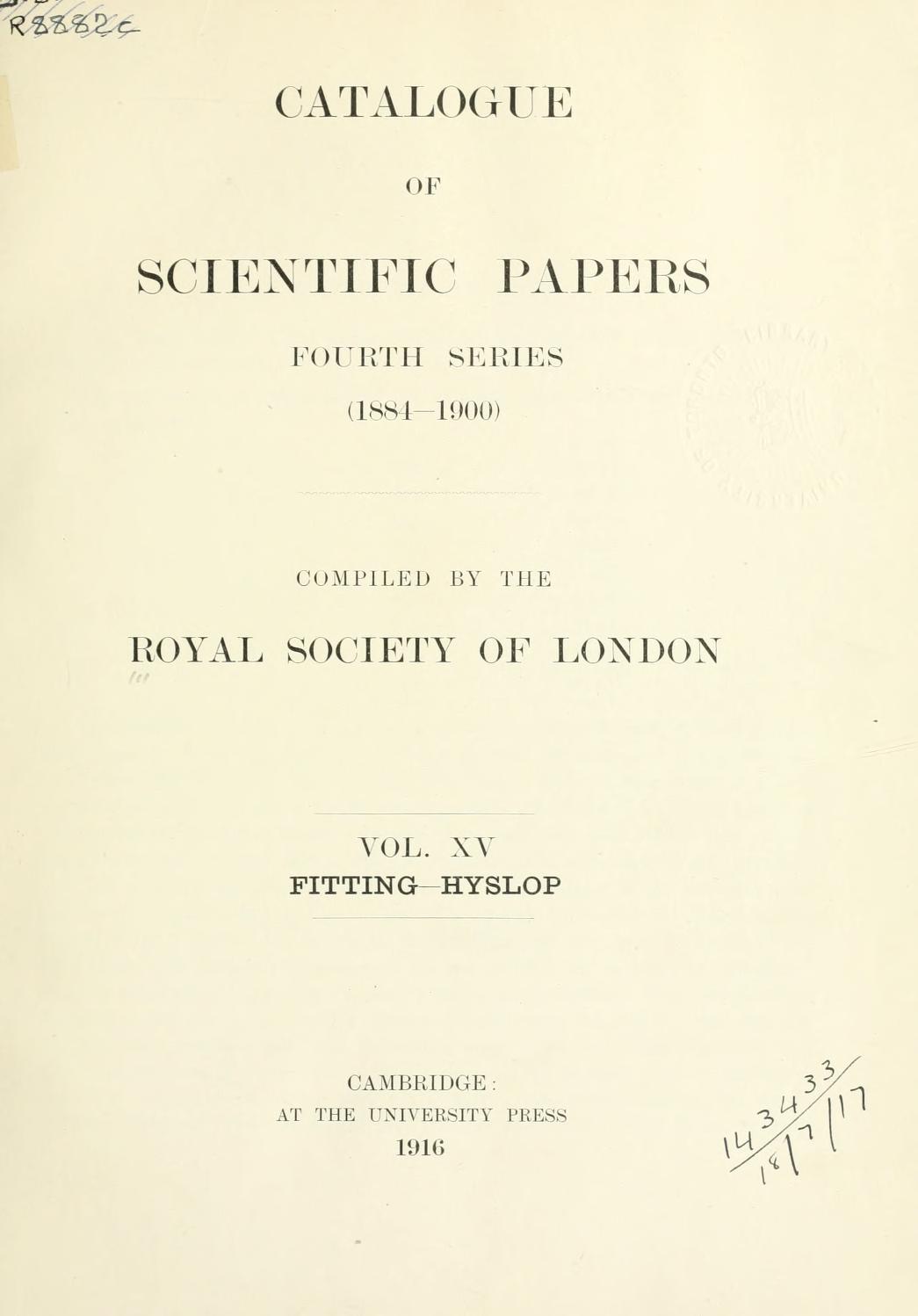 Catalogue of scientific papers, 1800-1863 [to 1884-1900].v. 15