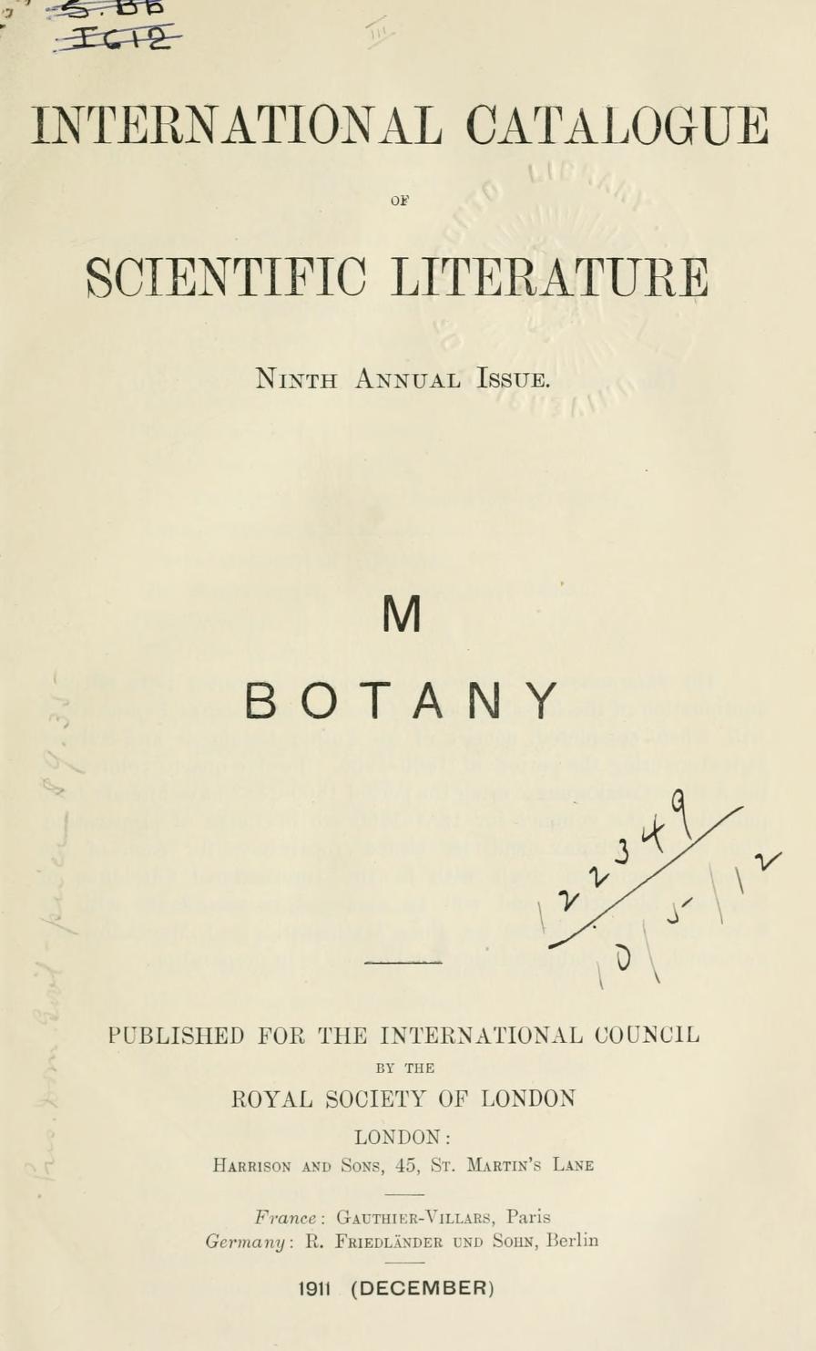 LondonPublished for the International Council by the Royal Society of London1901-1920