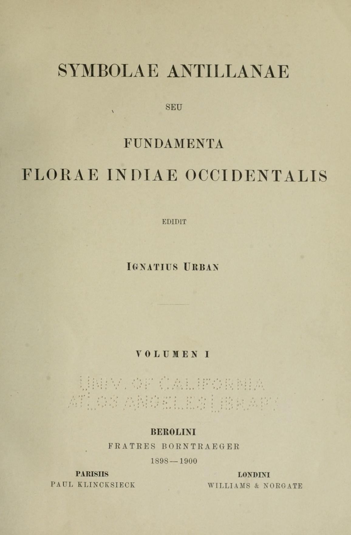 Symbolae Antillanae,seu, Fundamenta florae Indiae Occidentalis /v.1 pt.1