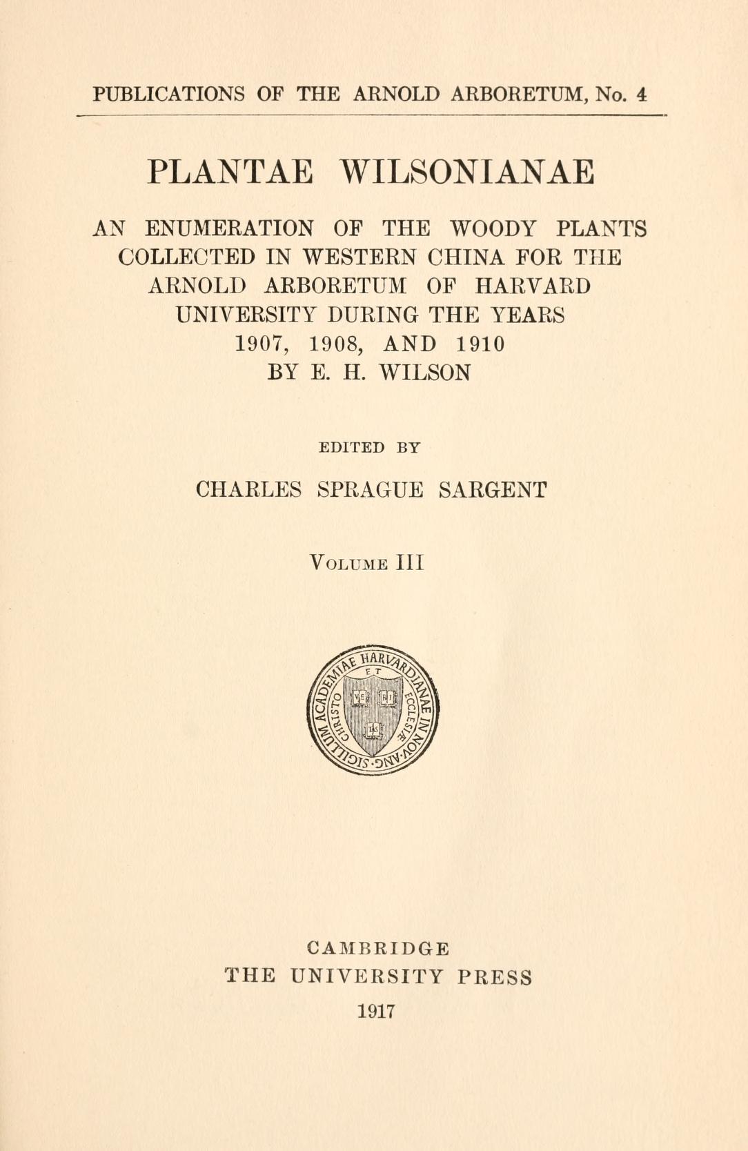 Plantae Wilsonianae; an enumeration of the woody plants collected in western China for the Arnold arboretum of Harvard university during the years 1907, 1908, and 1910,v.3 (1917)