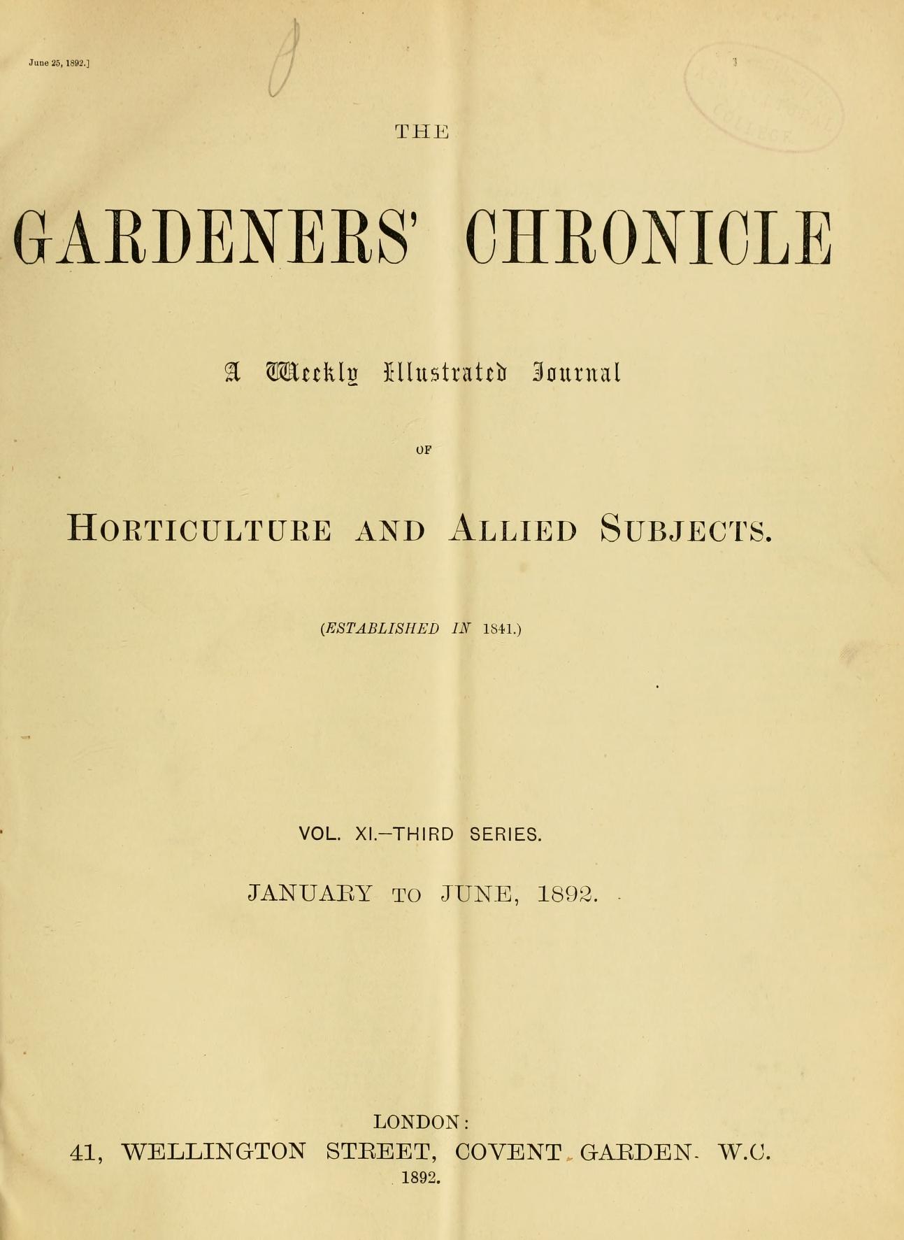The Gardeners' chronicle :a weekly illustrated journal of horticulture and allied subjects.ser.3:v.11 (1892)