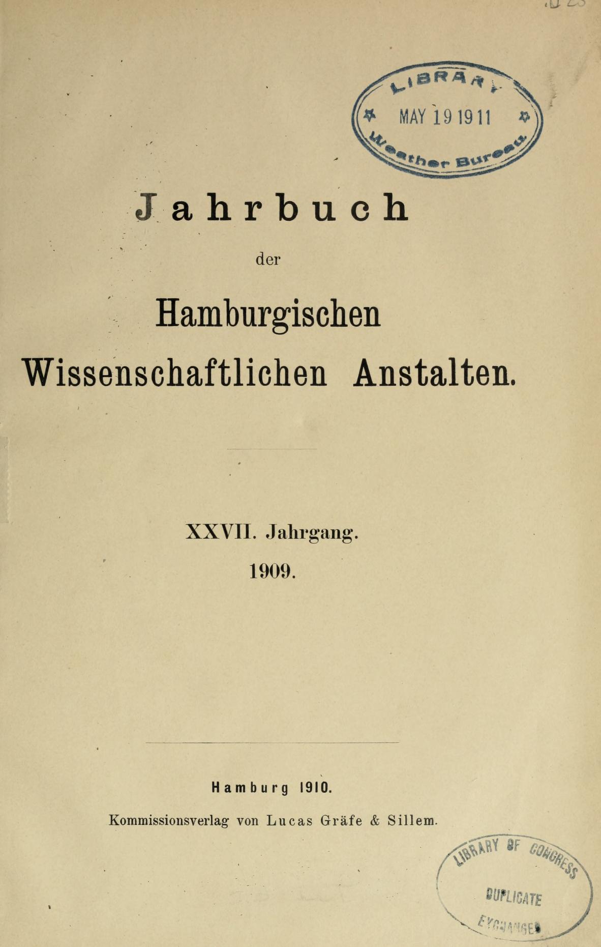 Jahrbuch der Hamburgischen Wissenschaftlichen Anstalten.Jahrg.27 (1909-1910)