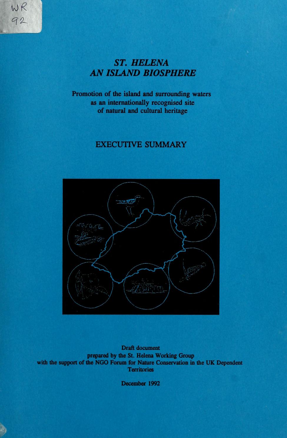 St Helena, an island Biosphere Reserve. Draft, executive summary. St Helena Working Group1992